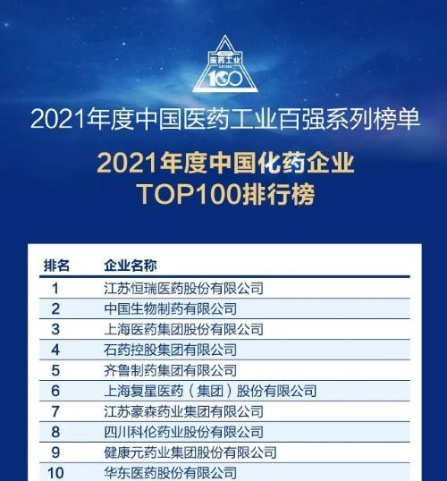 此前,AG亚游医药已经连续多年入选“中国化药企业TOP100排行榜”,自2018年起名列首位,今年再度蝉联榜首。